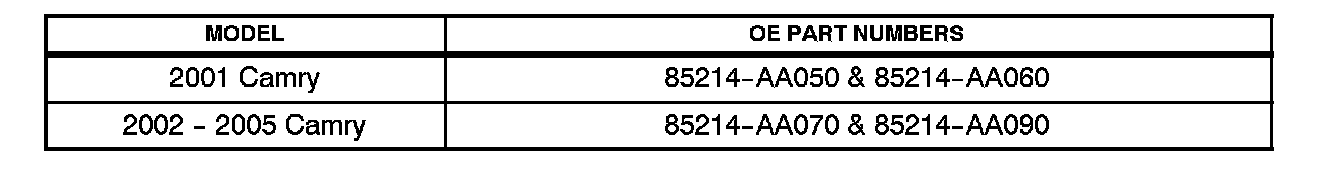 ^ 2001 - 2005 model year Camry vehicles.