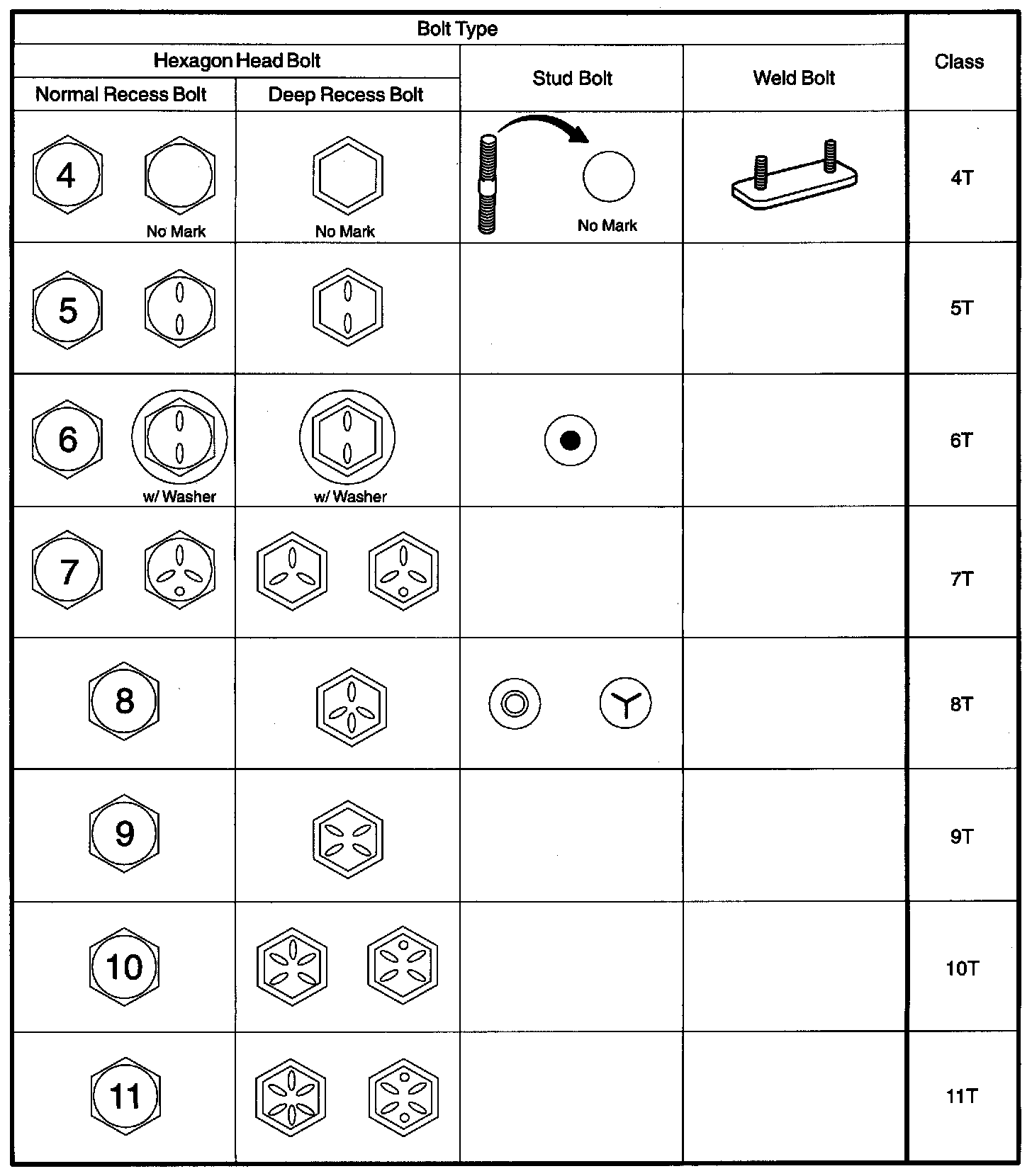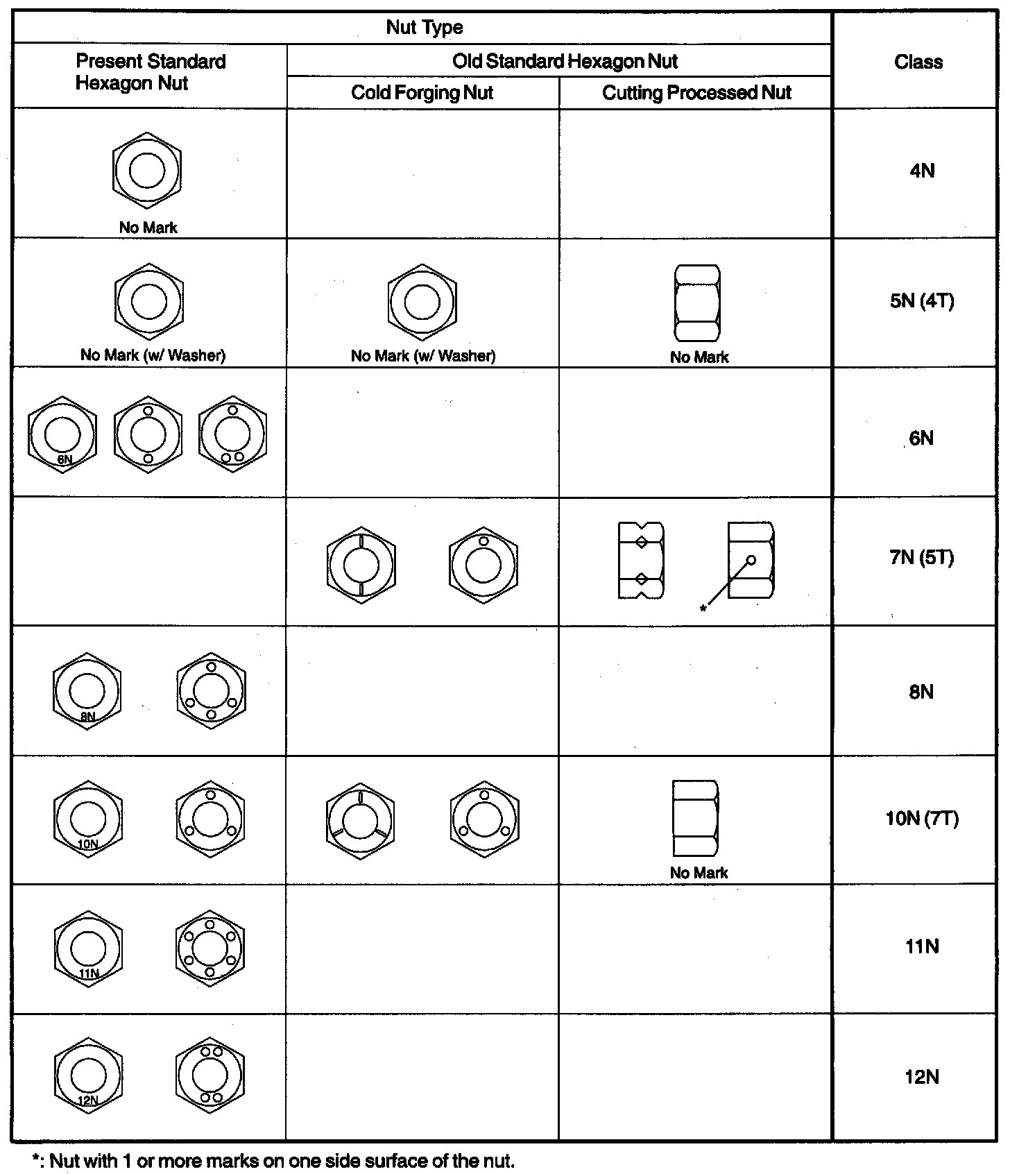 HINT: Use the nut with the same number of the nut strength classification or the greater than the bolt strength classification number when tightening parts with a bolt and nut.