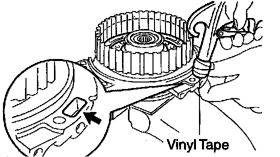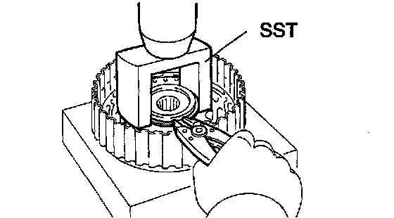 c. Install the snap ring with a snap ring expander. Be sure the end gap of the snap ring is not aligned with the spring retainer claw.