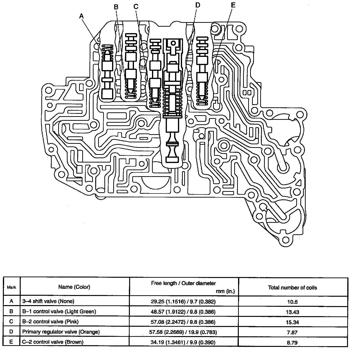 During reassembly, please refer to the spring specifications to differentiate among the different springs.