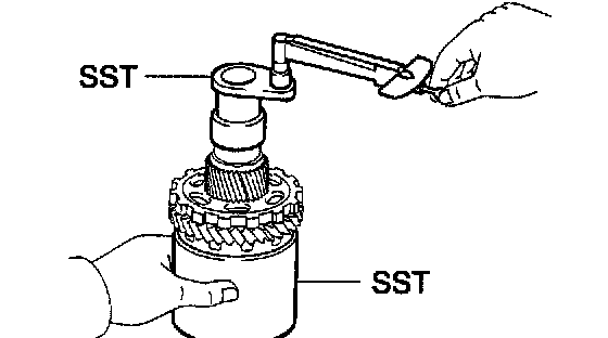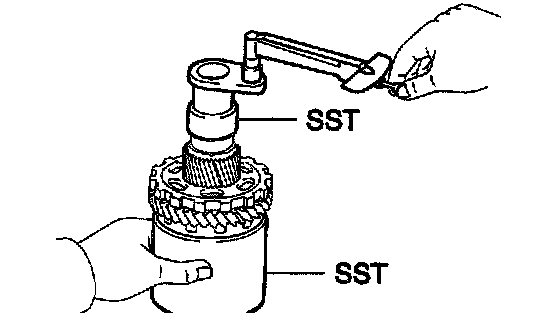 Using SST and a torque wrench, measure the turning torque of the U/D output shaft.