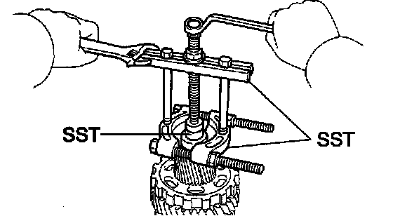 d. Using SST, remove the cylindrical roller bearing inner race.