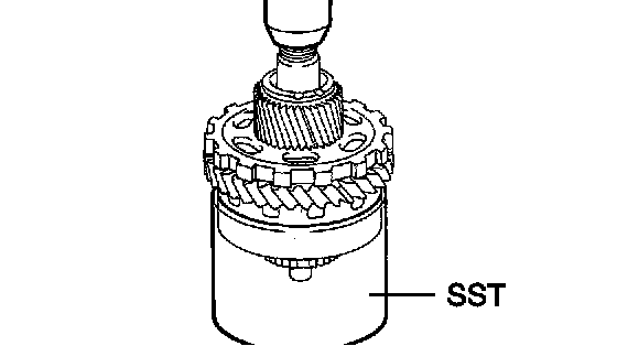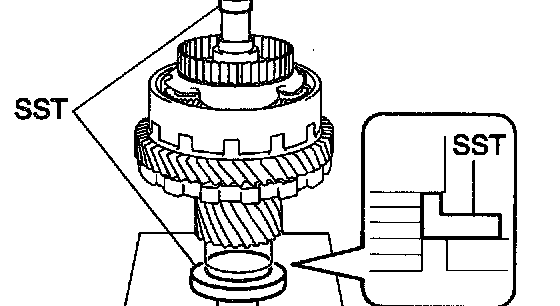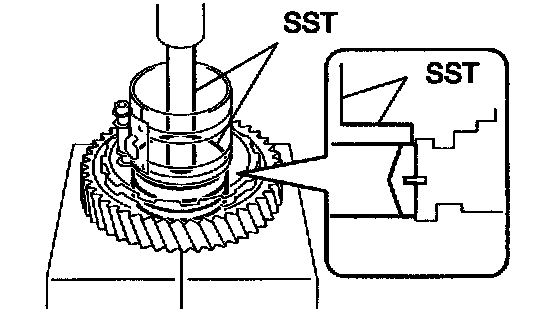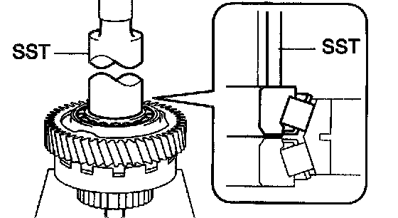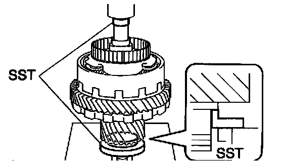 a. Using SST and a press, press in a new tapered roller bearing to the U/D planetary gear.