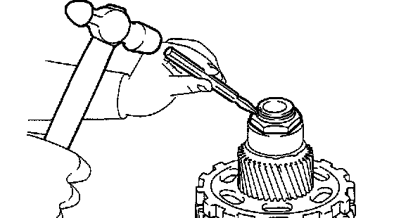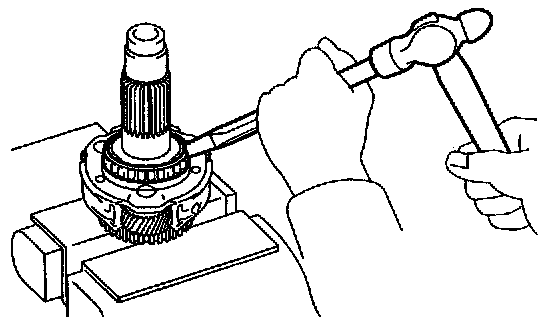 b. Secure the under drive planetary gear assembly into a vise, cut off the cover of the tapered roller bearing with a chisel and hammer and remove the cover and roller.
