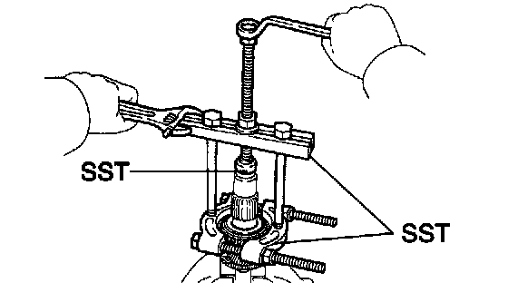 c. Using SST, remove the lock nut.