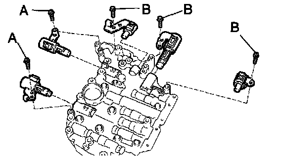 Remove the 5 bolts and 5 shift solenoid valves.