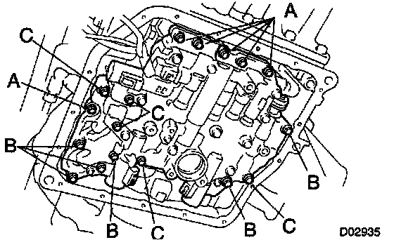 b. Temporarily install the valve body with the 17 bolts.