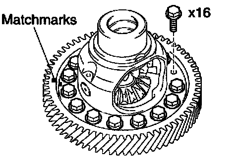a. Place matchmarks on the ring gear and differential case.