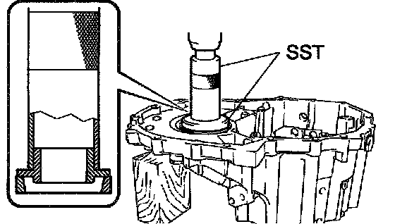 6. Transmission Case Side: IF NECESSARY, REPLACE OIL SEAL AND TAPERED ROLLER BEARING OUTER RACE