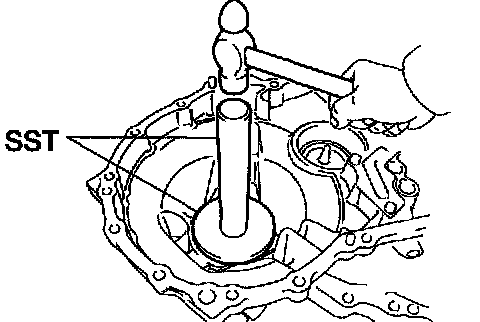 f. Using SST and a hammer, drive in a new oil seal.