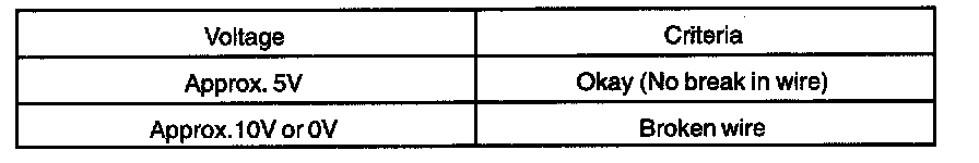 HINT: If the heat wire is not broken, the voltmeter indicates 0 V at the positive (+) end of the heat wire but gradually increases to about 12 V as the meter probe is moved to the other end.