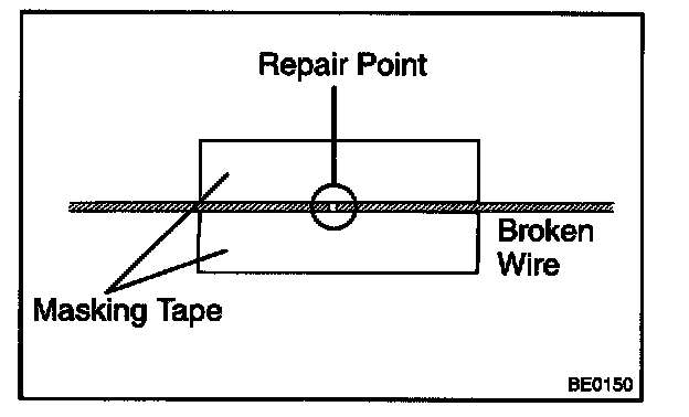 b. Place the masking tape along both sides of the wire to be repaired.