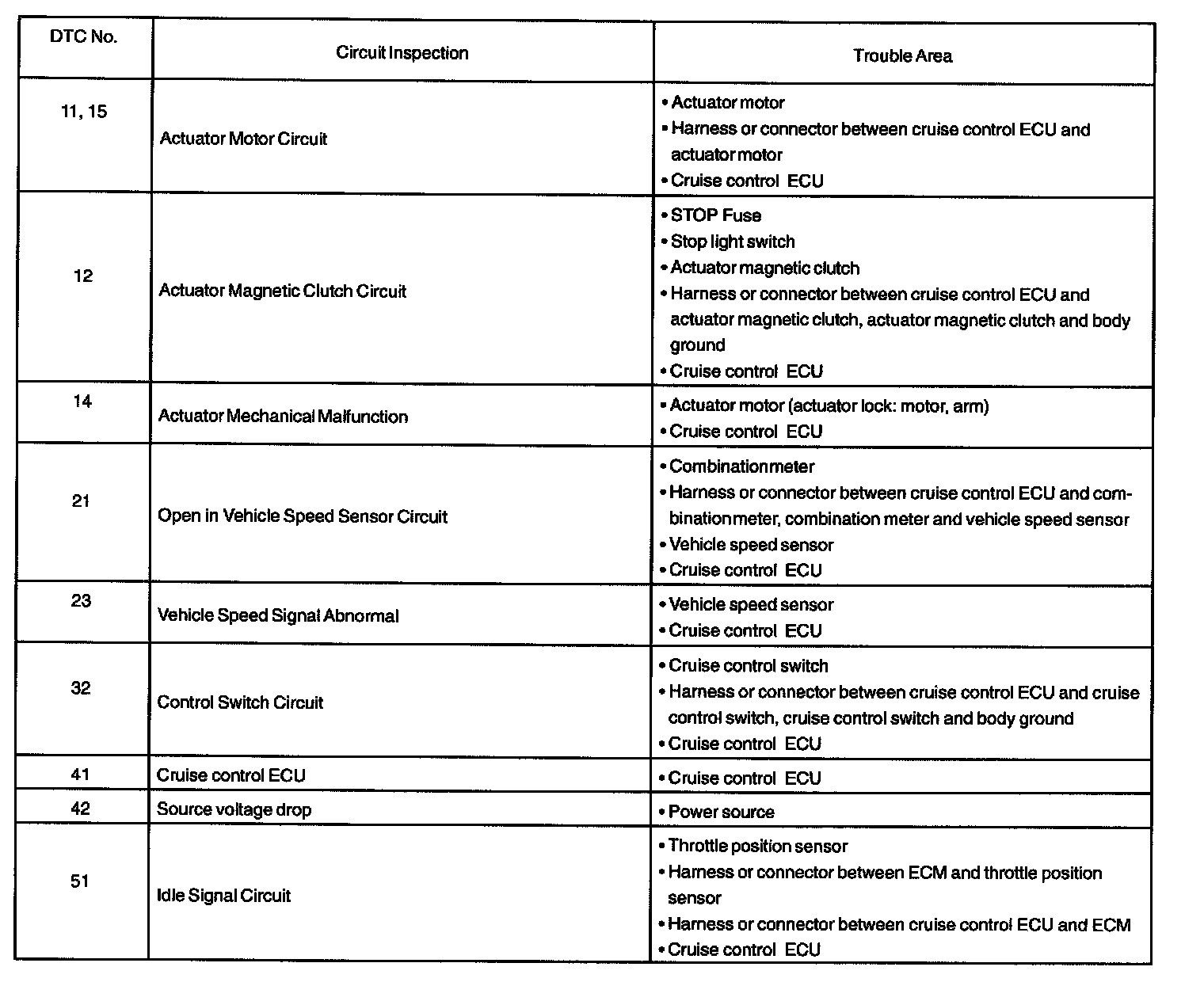 If a malfunction code is displayed during the DTC check, check the circuit listed for that code in the table and proceed to the appropriate troubleshooting.