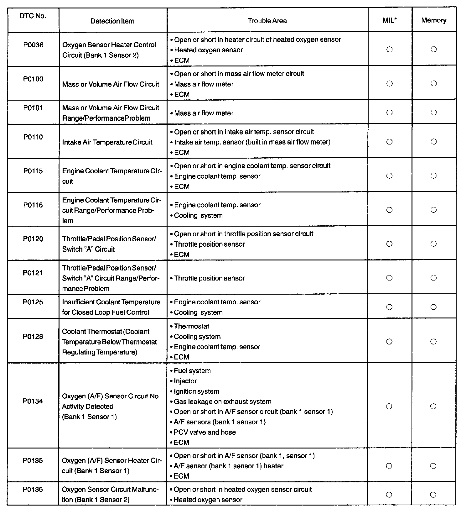 DIAGNOSTIC TROUBLE CODE CHARTDTC P0038 - P0138: