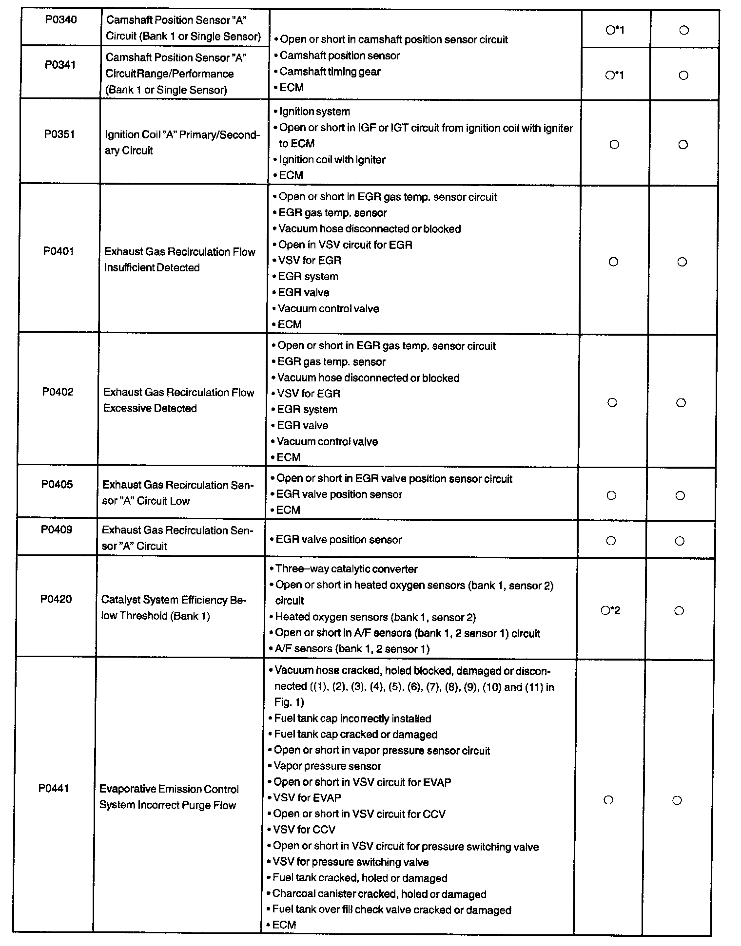 DTC P0340 - P0441: