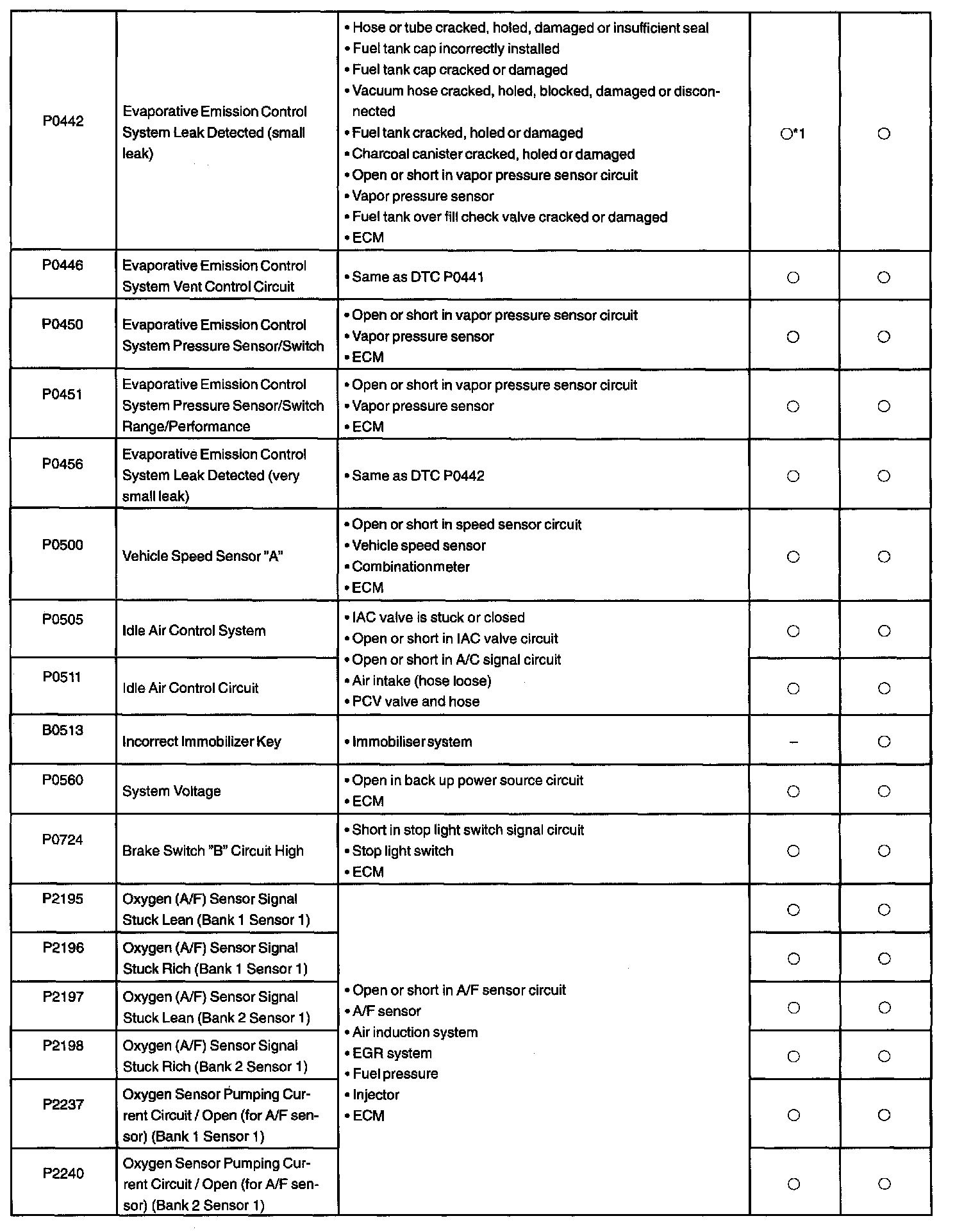 DTC P0442 - P2240: