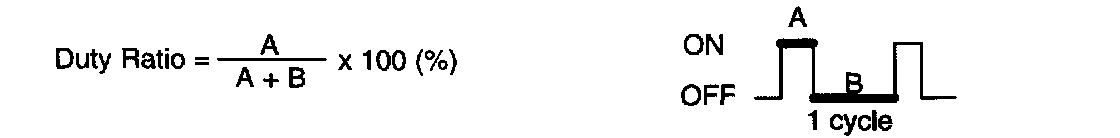 The duty ratio is the ratio of the period of continuity in one cycle. For example, if A is the period of continuity in one cycle, and B is the period of non-continuity.