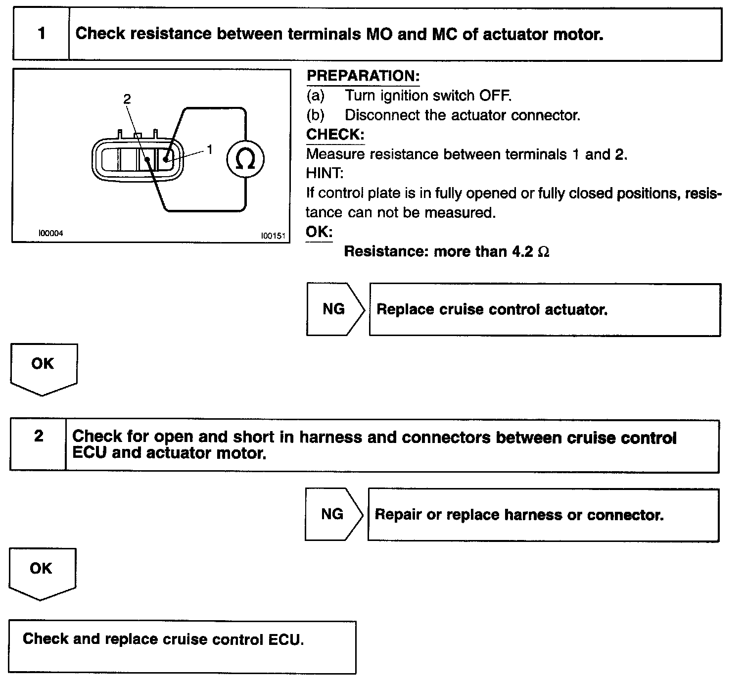 The actuator motor is operated by signals from the ECU. Acceleration and deceleration signals are transmitted according to changes in the Duty Ratio.