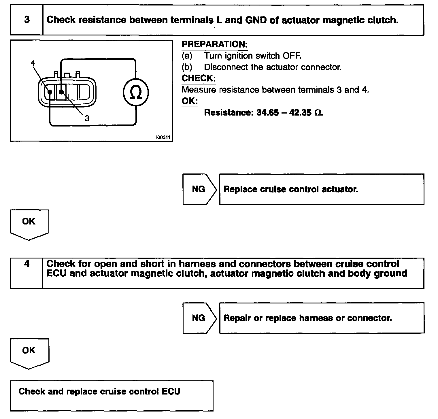 This circuit turns on the magnetic clutch inside the actuator during cruise control operation according to the signal from the ECU. If a malfunction occurs in the actuator or speed sensor, etc. during cruise control operation, the rotor shaft between the motor and control plate is released.