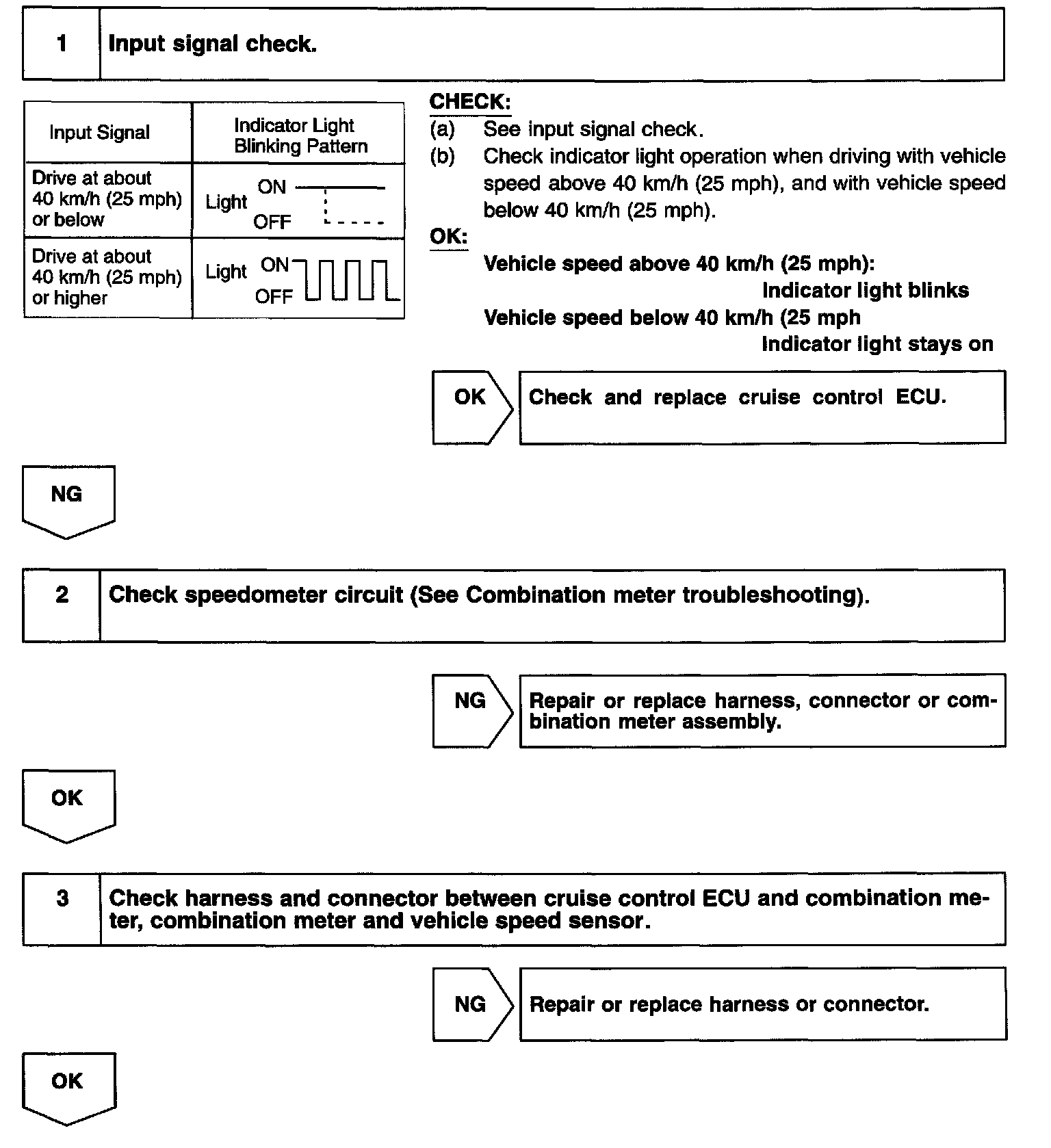 This signal is converted inside the combination meter and sent as a 4-pulse signal to the cruise control ECU.