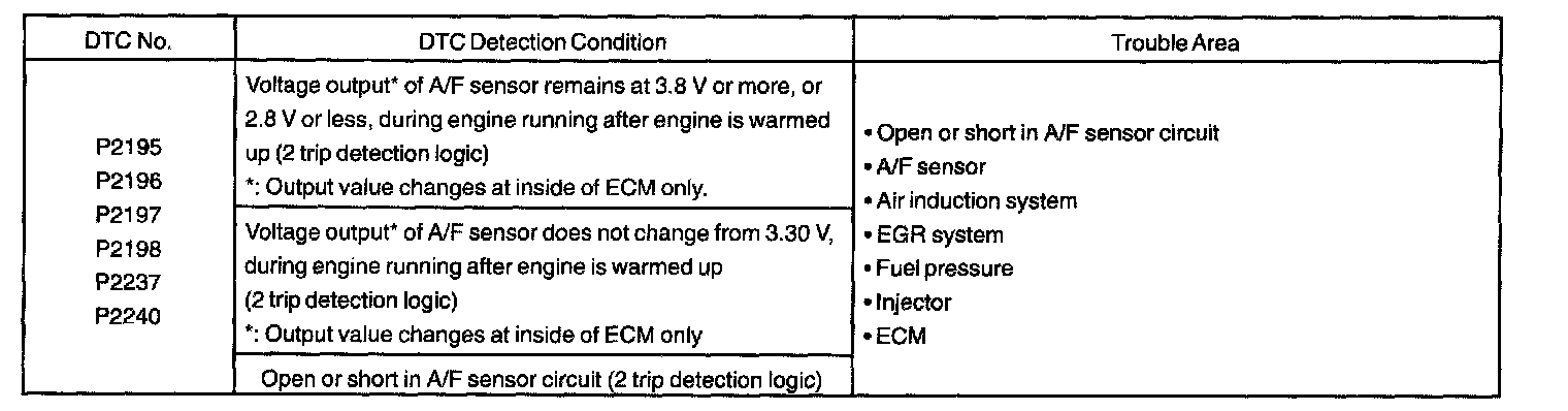 DTC P2196 Oxygen (A/F) Sensor Signal Stuck Rich (Bank 1 Sensor 1)CIRCUIT DESCRIPTION