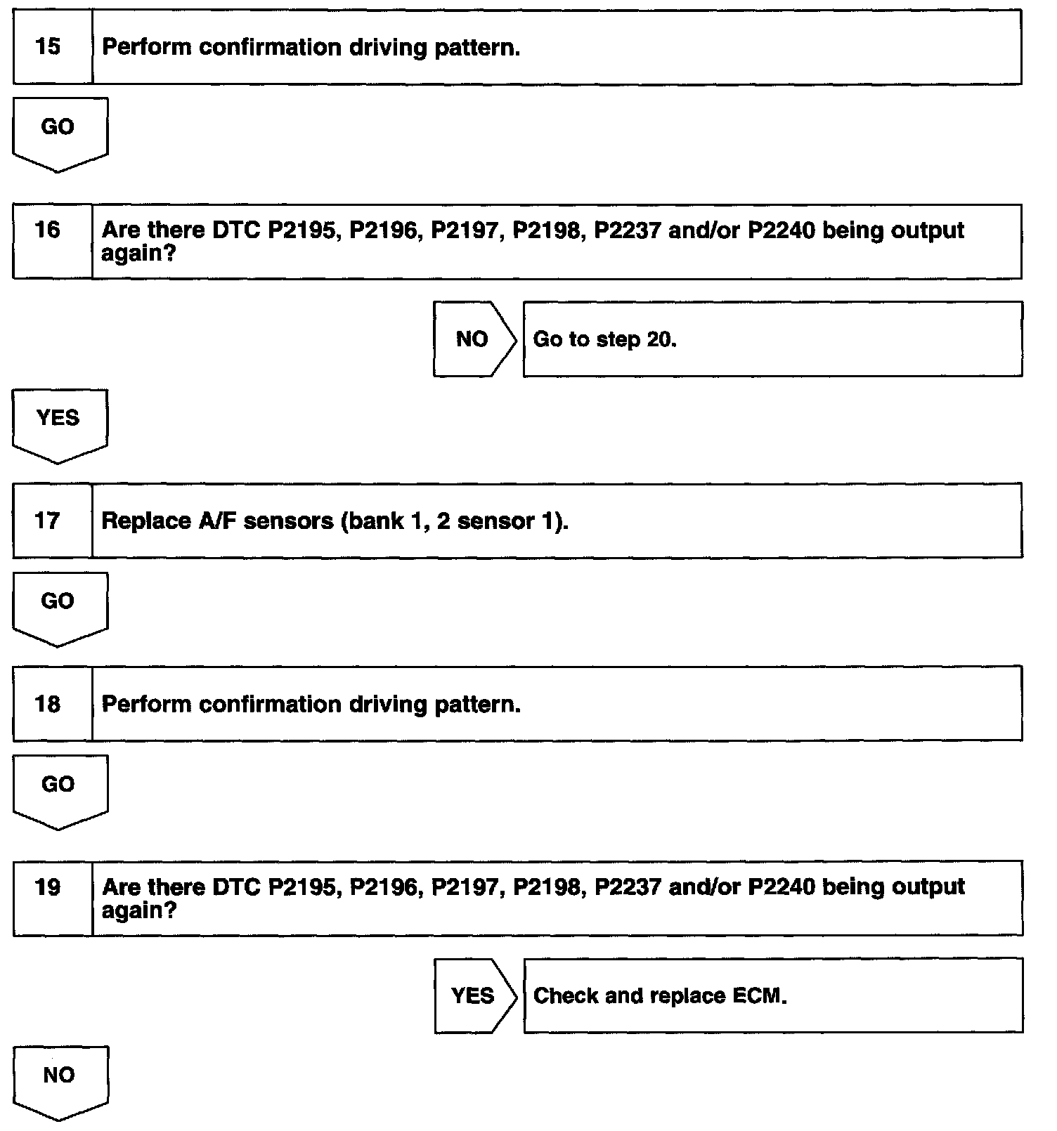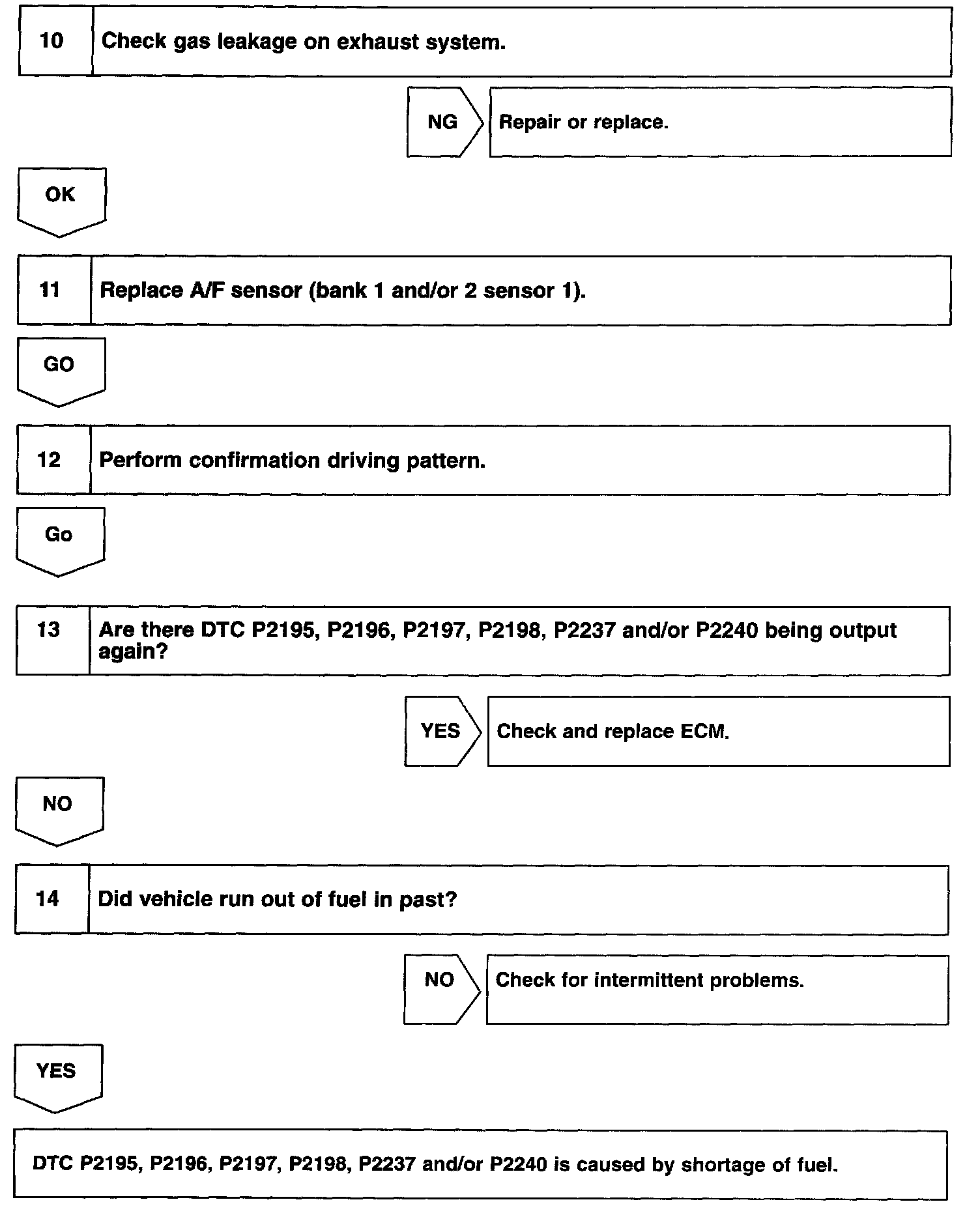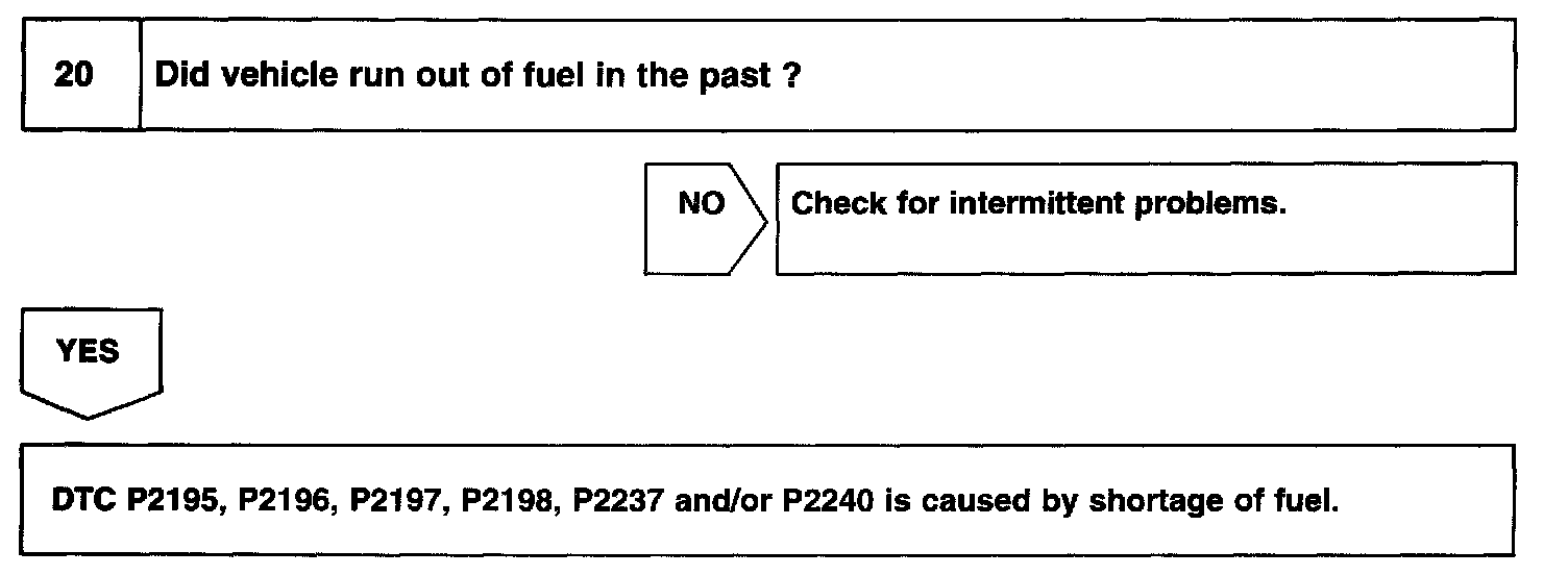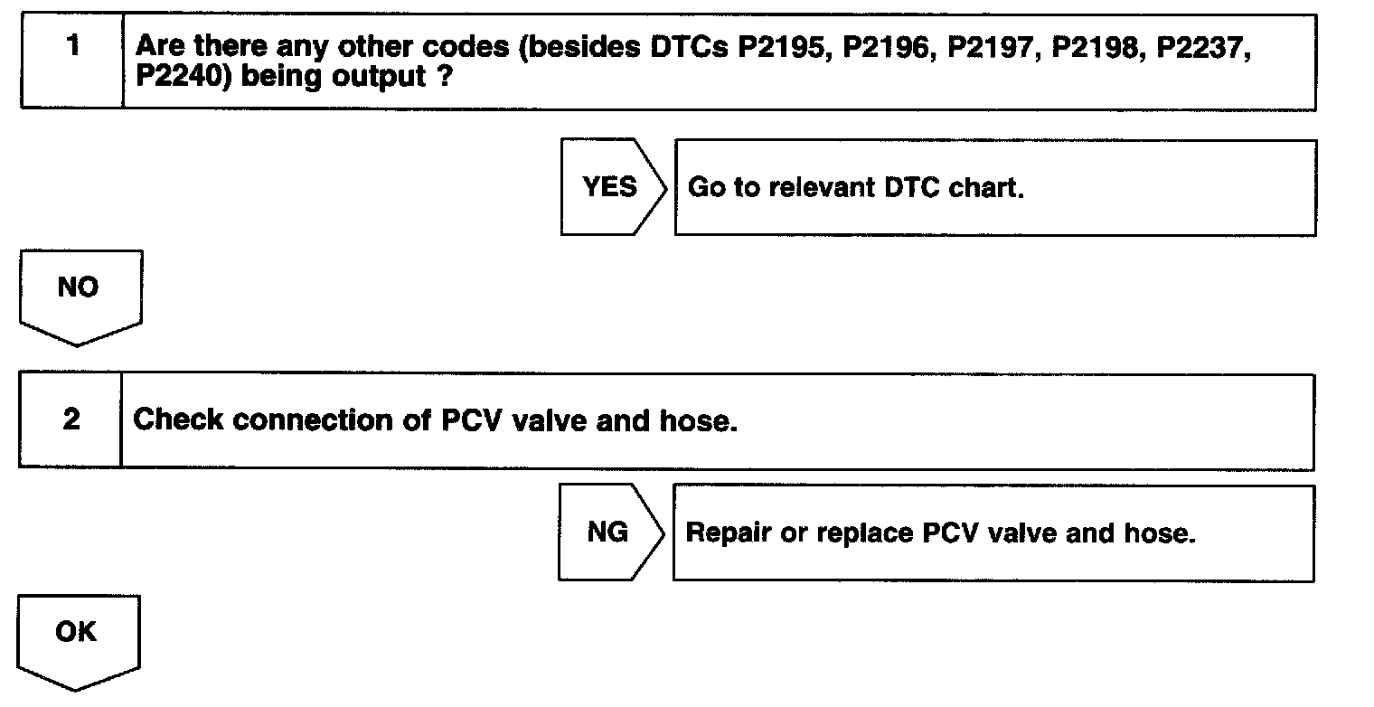 - If DTC P2195, P2196, P2237is displayed, check Bank 1 Sensor 1 circuit.