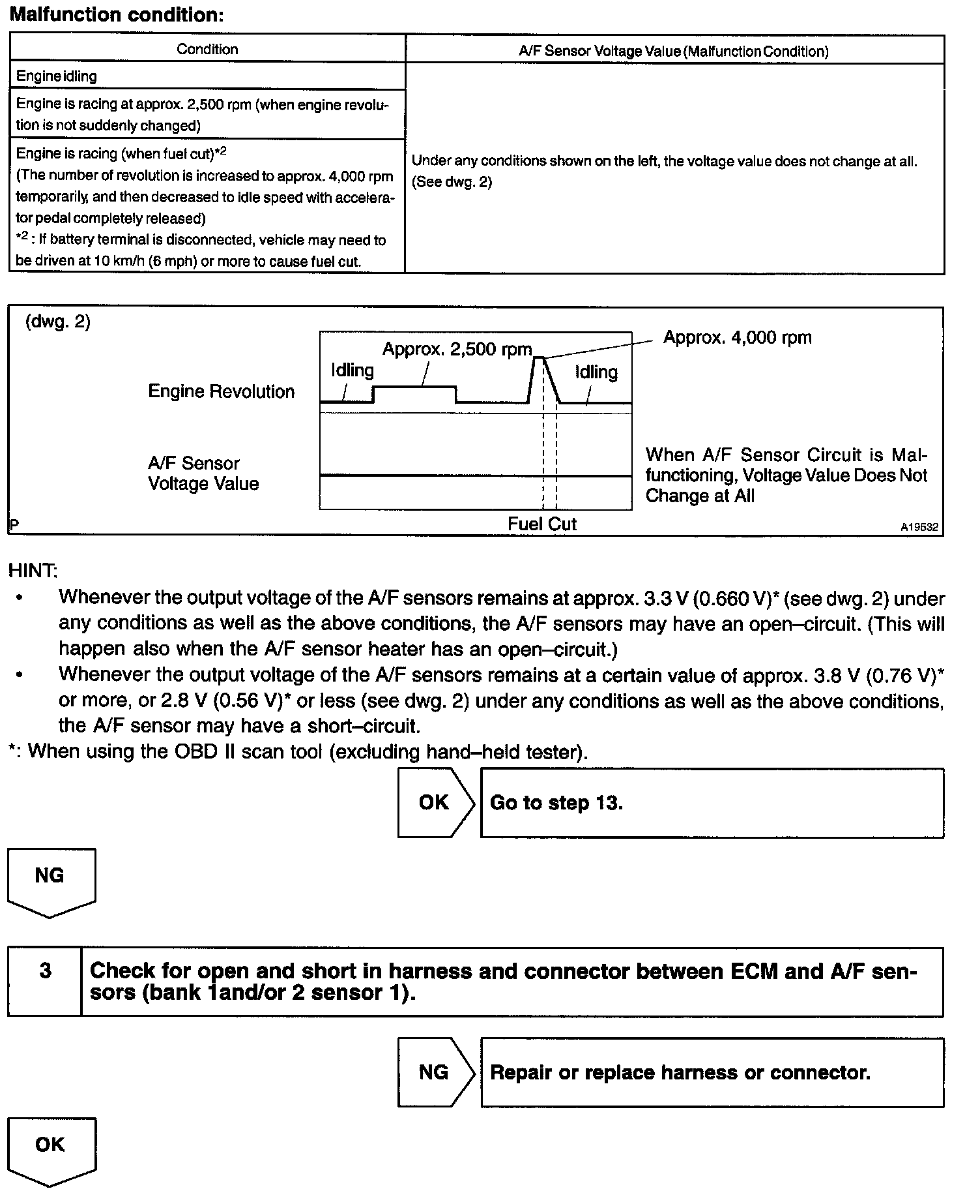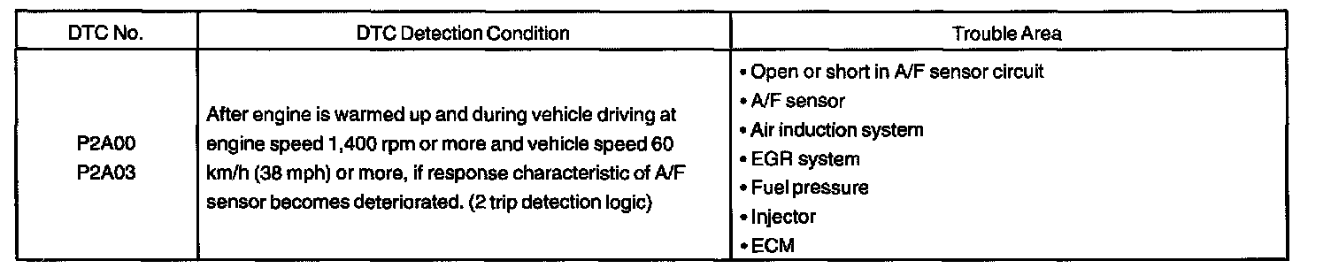 DTC P2A03 A/F Sensor Circuit Slow Response (Bank 2 Sensor 1)CIRCUIT DESCRIPTION