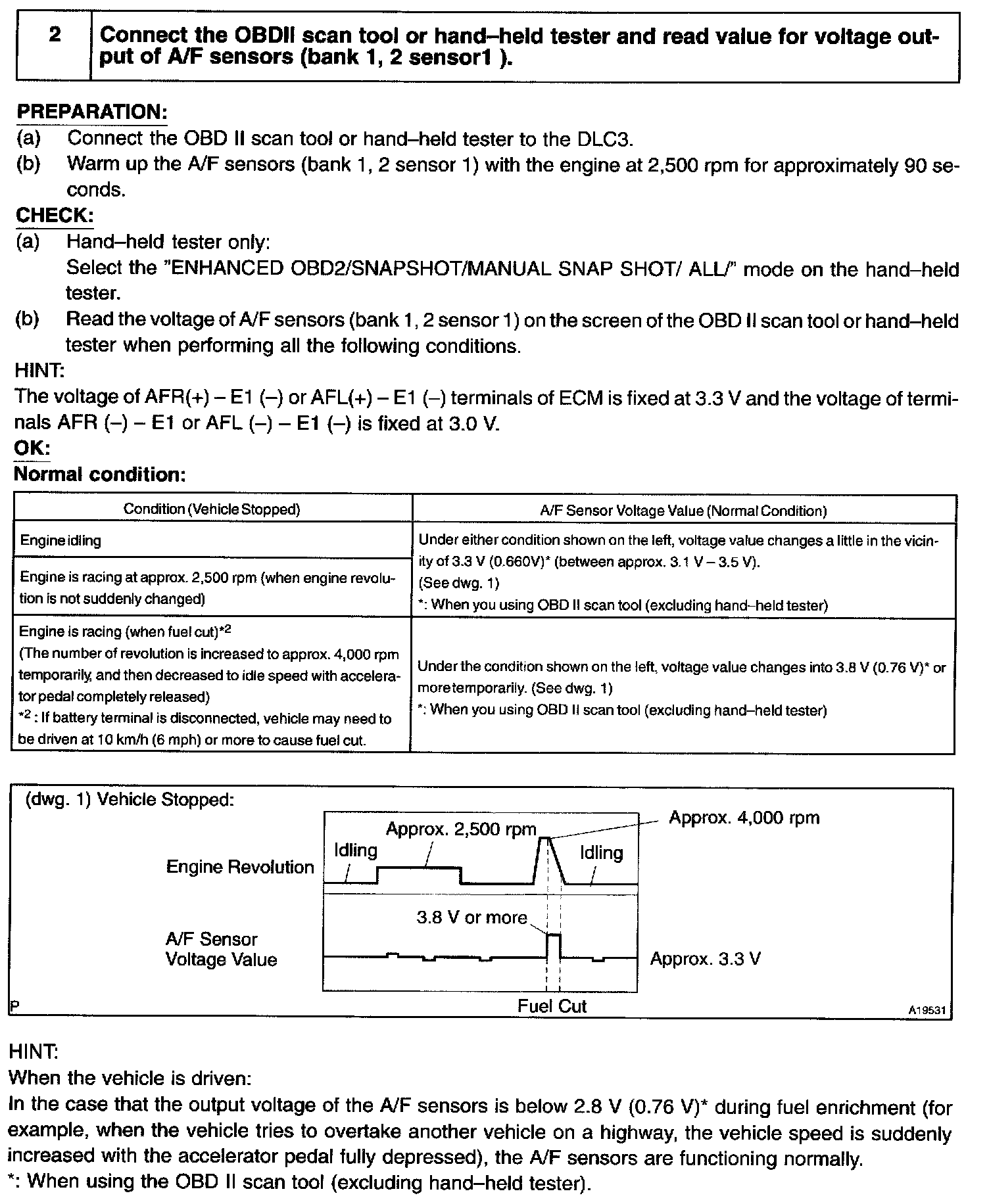 3. Start the engine and warm it up for 2 min. or more with all the accessory switch OFF.