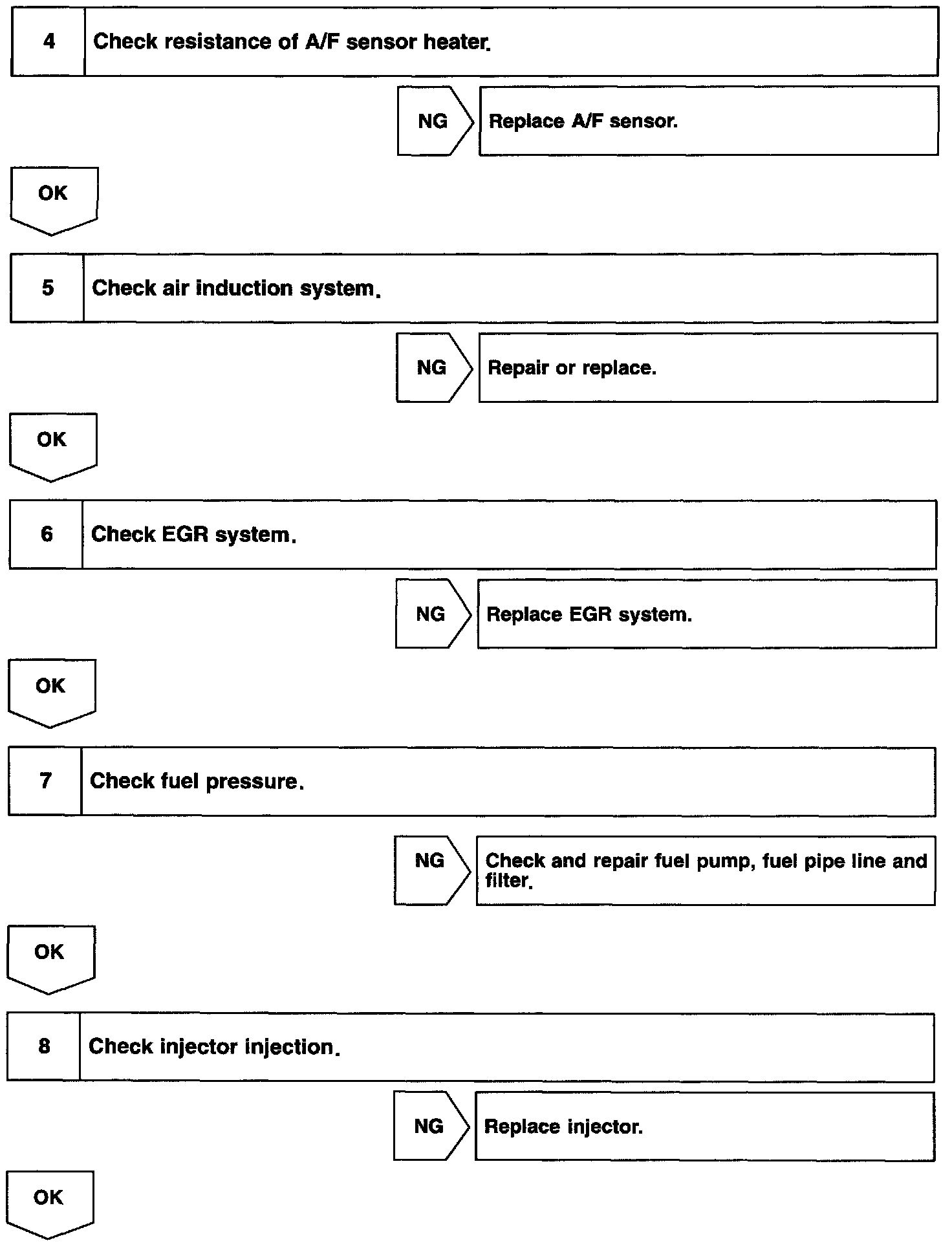 HINT: If a malfunction exists, the MIL will light up during step (4).