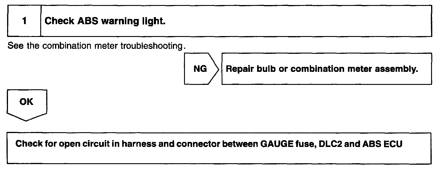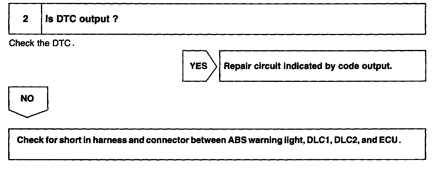 If the ECU has detected a trouble, it lights the ABS warning light, prohibits the ABS control simultaneously. At this time, the ECU records a DTC in the memory.