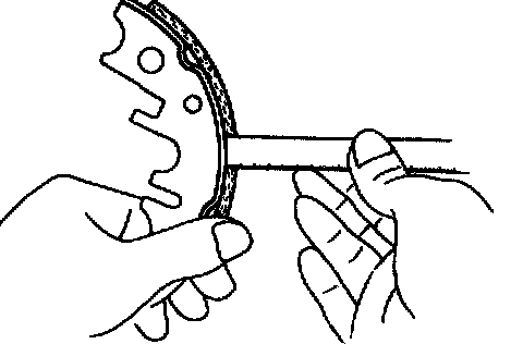 Replace the disc if the inside diameter is at the maximum value or more. Replace the disc or grind it with a lathe if the disc is scored or worn unevenly.