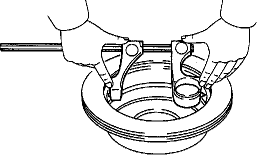 b. Install the shoe hold-down spring, 2 cups and pin.