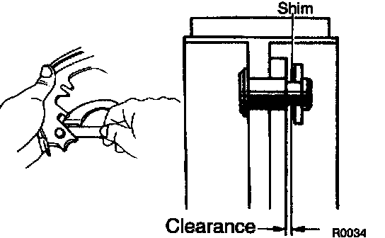 If the clearance is not within the specification, replace the shim with one of the correct size.