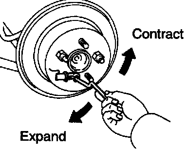 b. Turn the adjuster and expand the shoes until the disc locks.