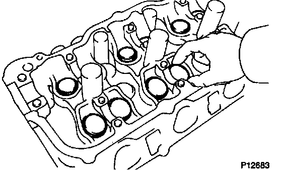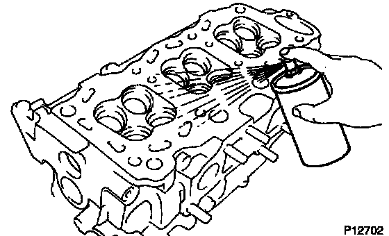 Using a dye penetrant, check the combustion chamber, intake ports, exhaust ports and cylinder block surface for cracks. If cracked, replace the cylinder head.