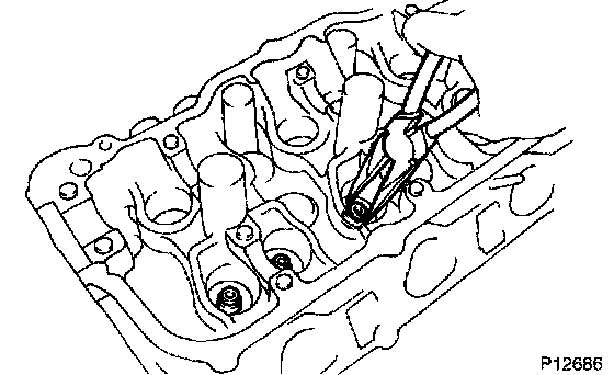 a. Using SST, compress the valve spring and remove the 2 keepers.
