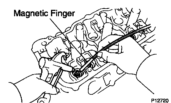 d. Using compressed air and a magnetic finger, remove the spring seat by blowing air.