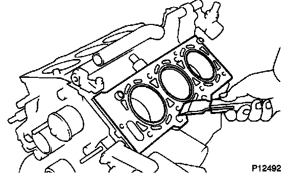 Using a gasket scraper, remove all the gasket material from the cylinder block contact surface.