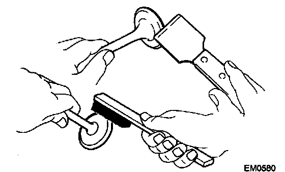 b. Using a wire brush, thoroughly clean the valve.