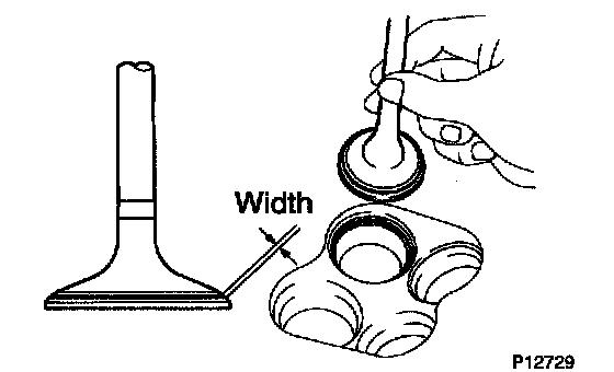 - Check that the seat contact is in the middle of the valve face with the following width: 1.0 - 1.4 mm (0.039 - 0.055 inch)