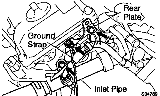 f. Connect the ground strap and cable to the intake air control valve for ACIS.