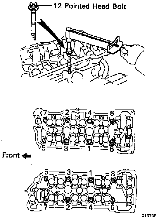 2. INSTALL 12 POINTED HEAD CYLINDER HEAD BOLTS