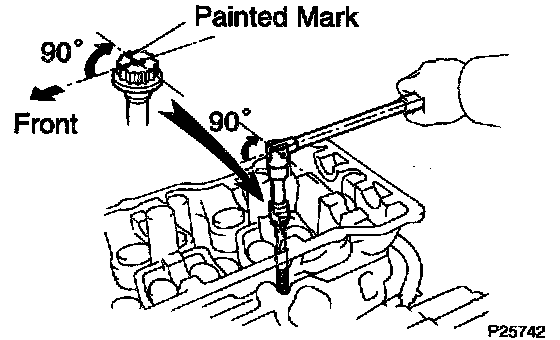 d. Mark the front of the cylinder head bolt head with paint.