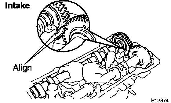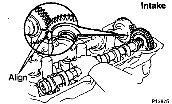 2) Align the timing marks (2 dot marks) of the camshaft drive and driven gears.