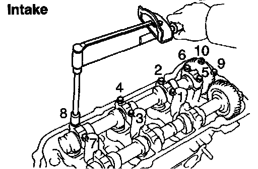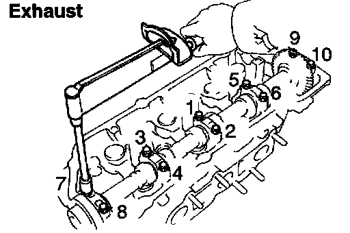 e. Retighten the cylinder head bolts by 90° in the numerical order shown.