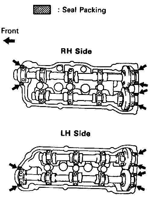 a. Apply seal packing to the cylinder heads as shown in the illustration.