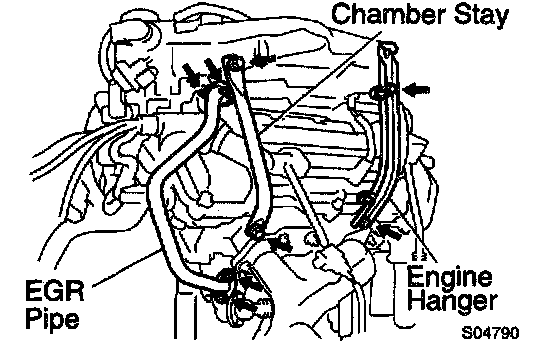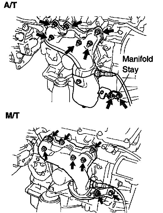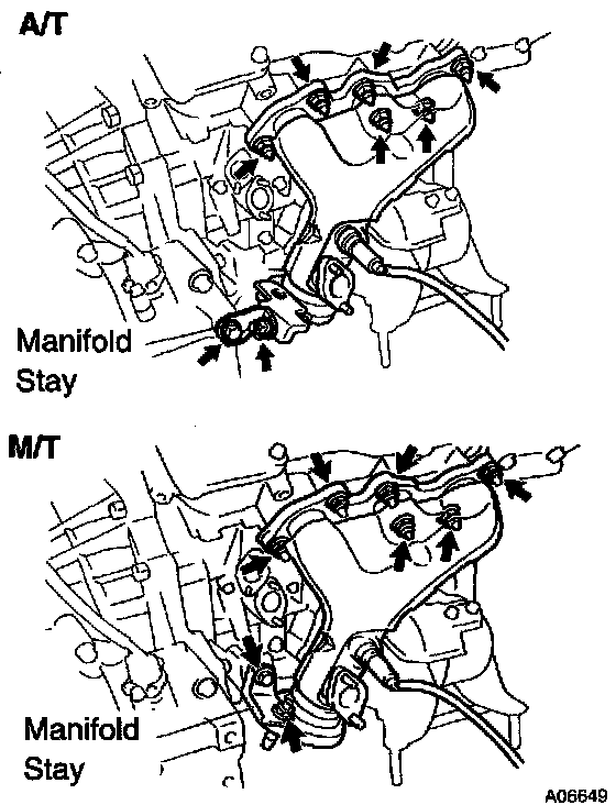 b. Install the exhaust manifold stay with the bolt and nut. Al ternately tighten the bolt and nut.