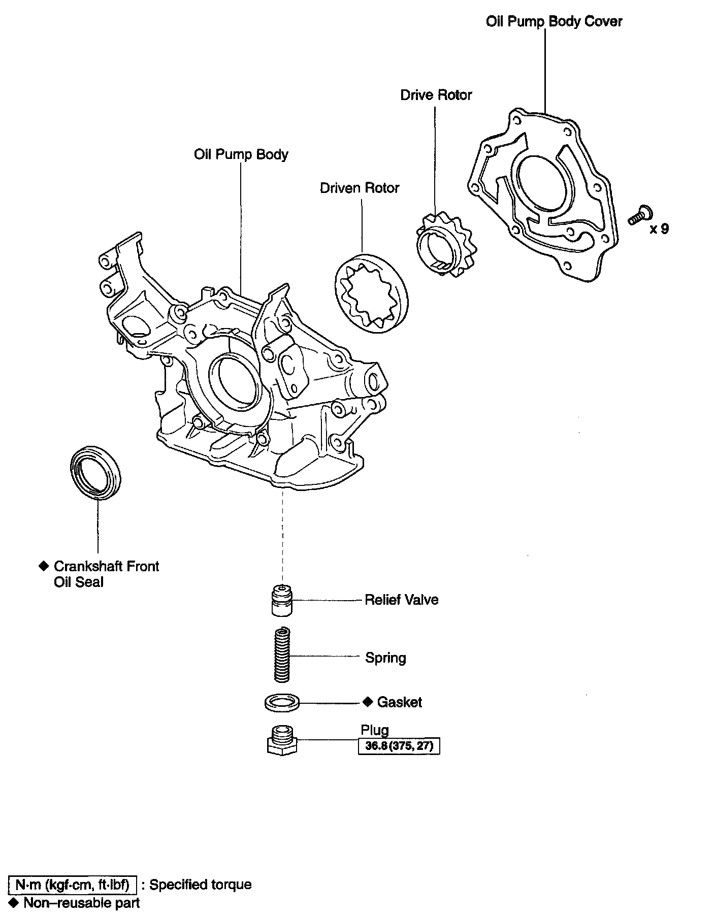 e. Install the oil pump with the 9 bolts. Uniformly tighten the bolts in several passes.