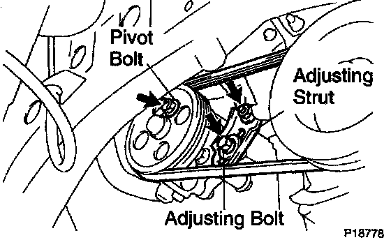 a. Loosen the pivot and adjusting bolts, and remove the drive belt.