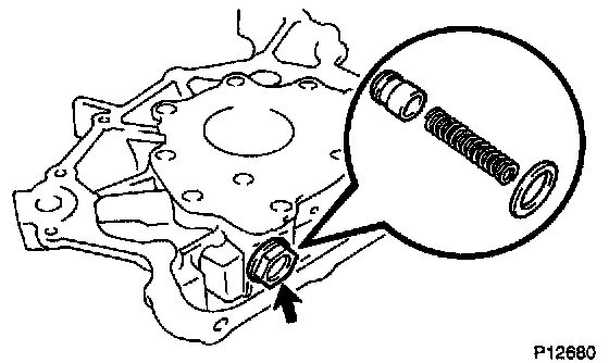 Insert the relief valve and spring into the pump body hole, and install the plug with a new gasket.